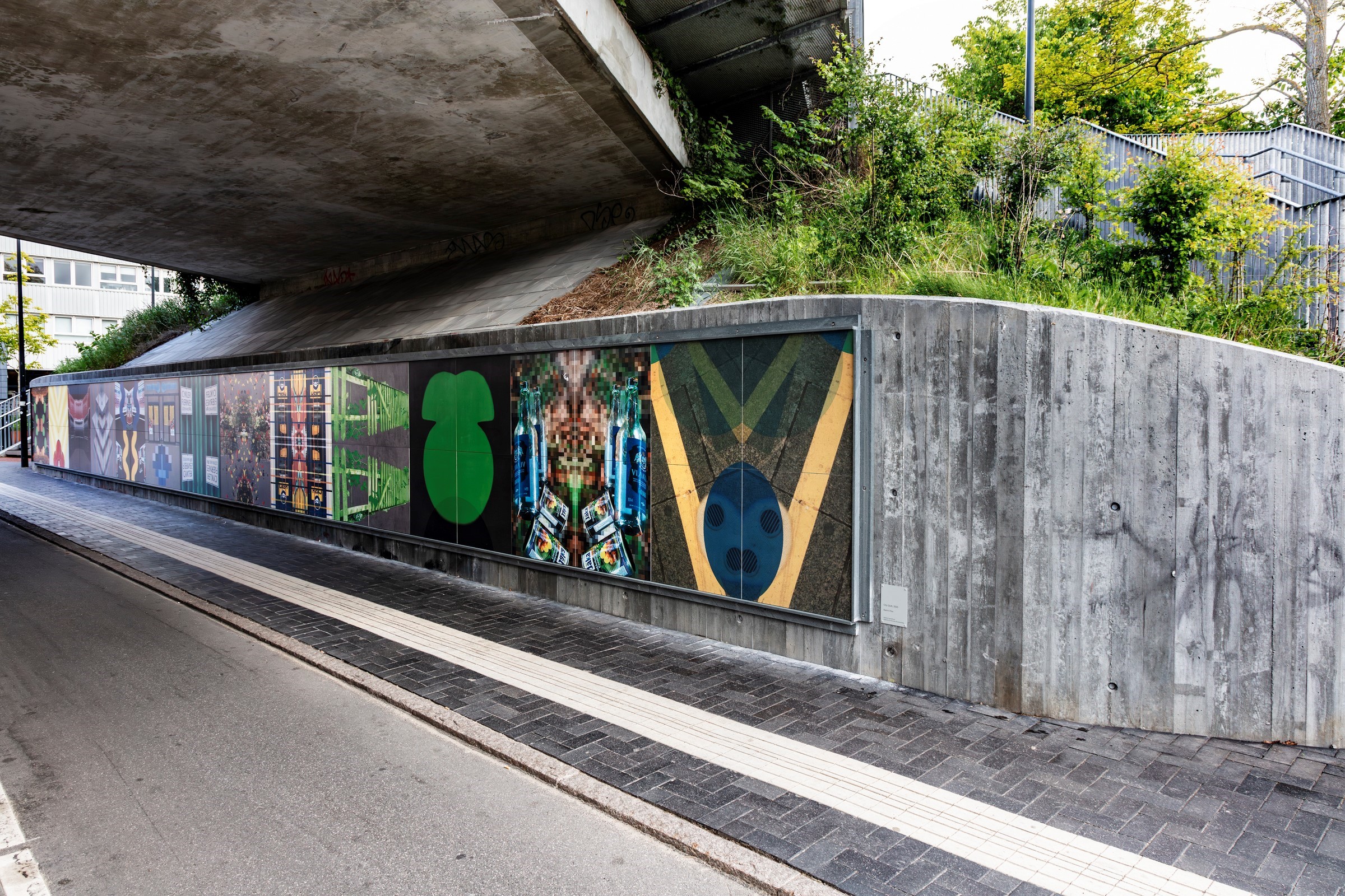 City Quilt er et kæmpe mosaiktæppe, der åbenbarer og visualiserer bydelen gennem udvalgte fotografiske segmenter og detaljer i et taktilt og legende billedsprog. De fotografiske billeder er printet på Teknostonefliser i 5 nuancer.