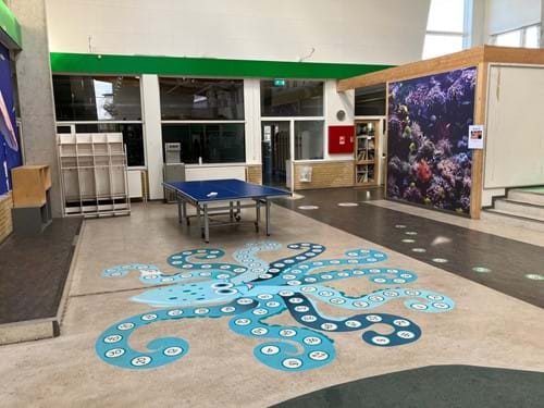Området E skal også være med til at danne ganglinjer. Blæksprutten i gulvet kan fjernes.